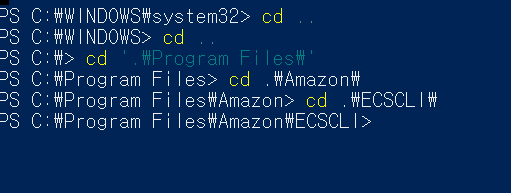 주의 반드시 C:\Program Files\Amazon\ECSCLI 폴더에 저장할 것